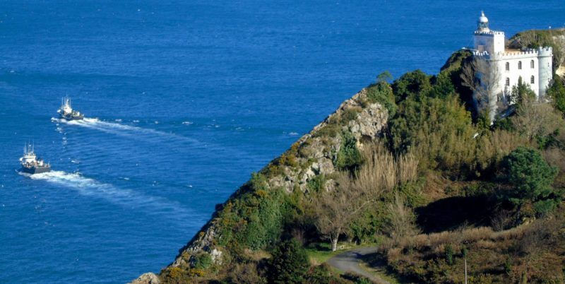 El Faro de la Plata está situado en el monte Ulía, en la margen occidental de la bocana de puerto de Pasajes.